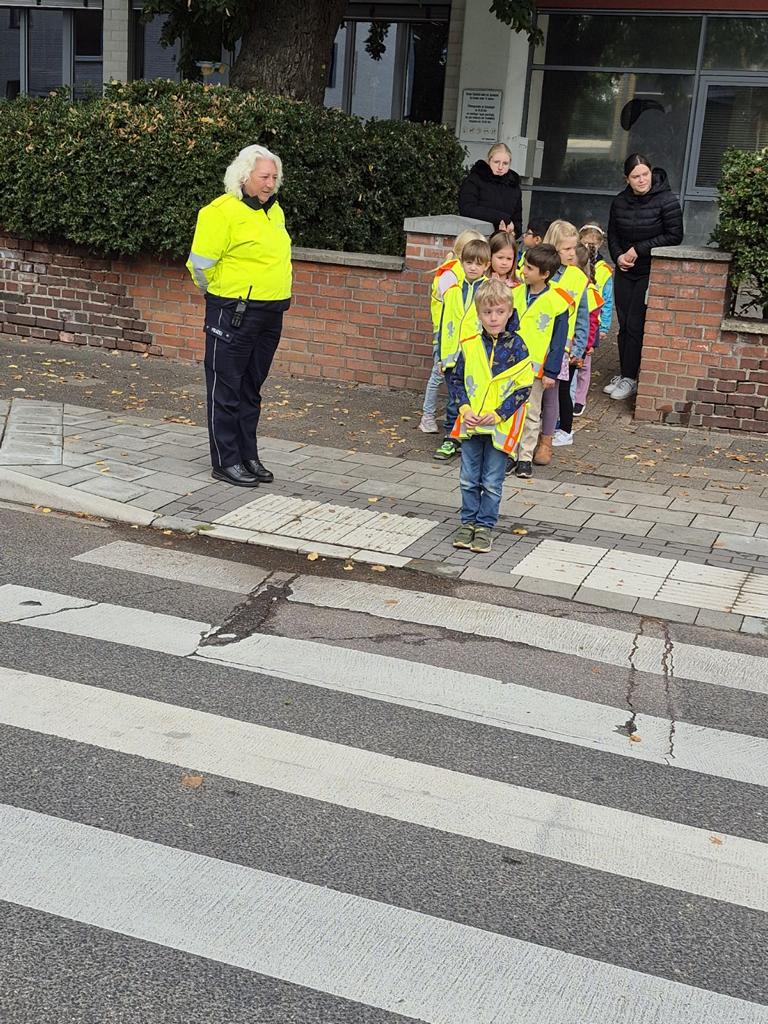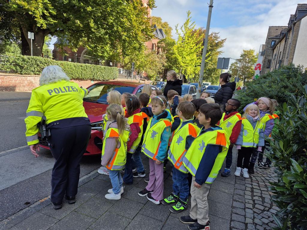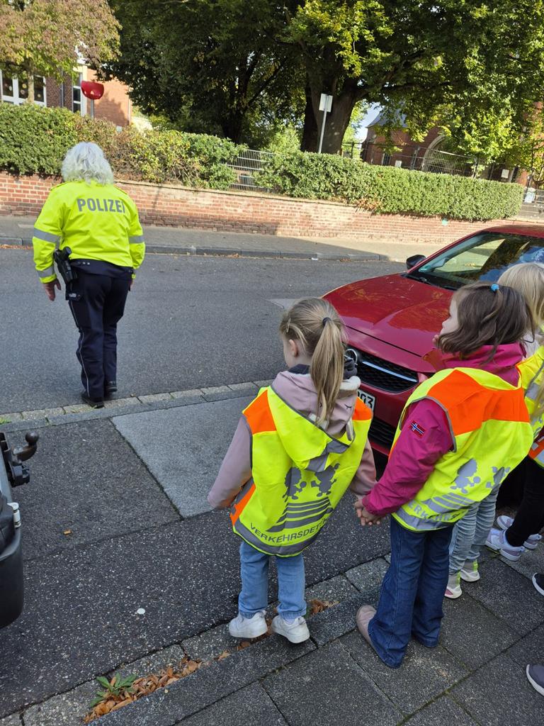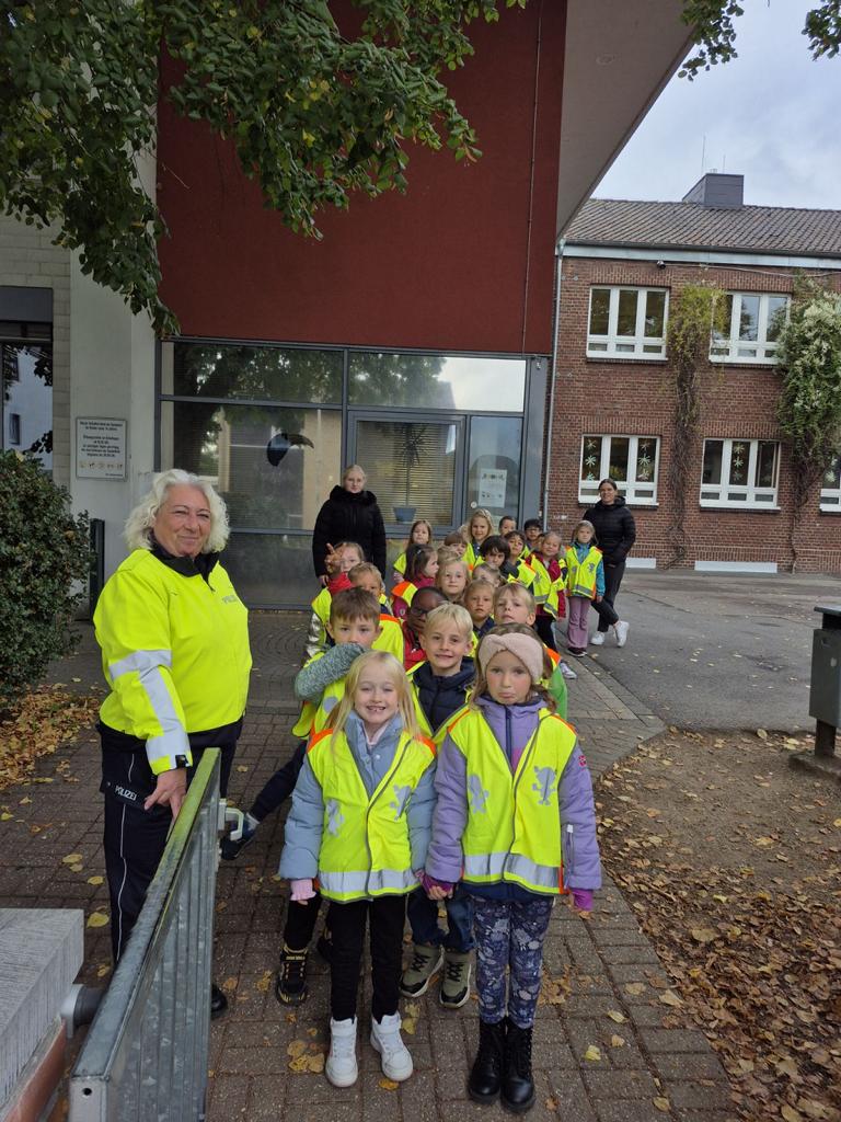 Das erste Schuljahr hatte heute Bordsteintraining mit der Polizistin Frau Thönissen.