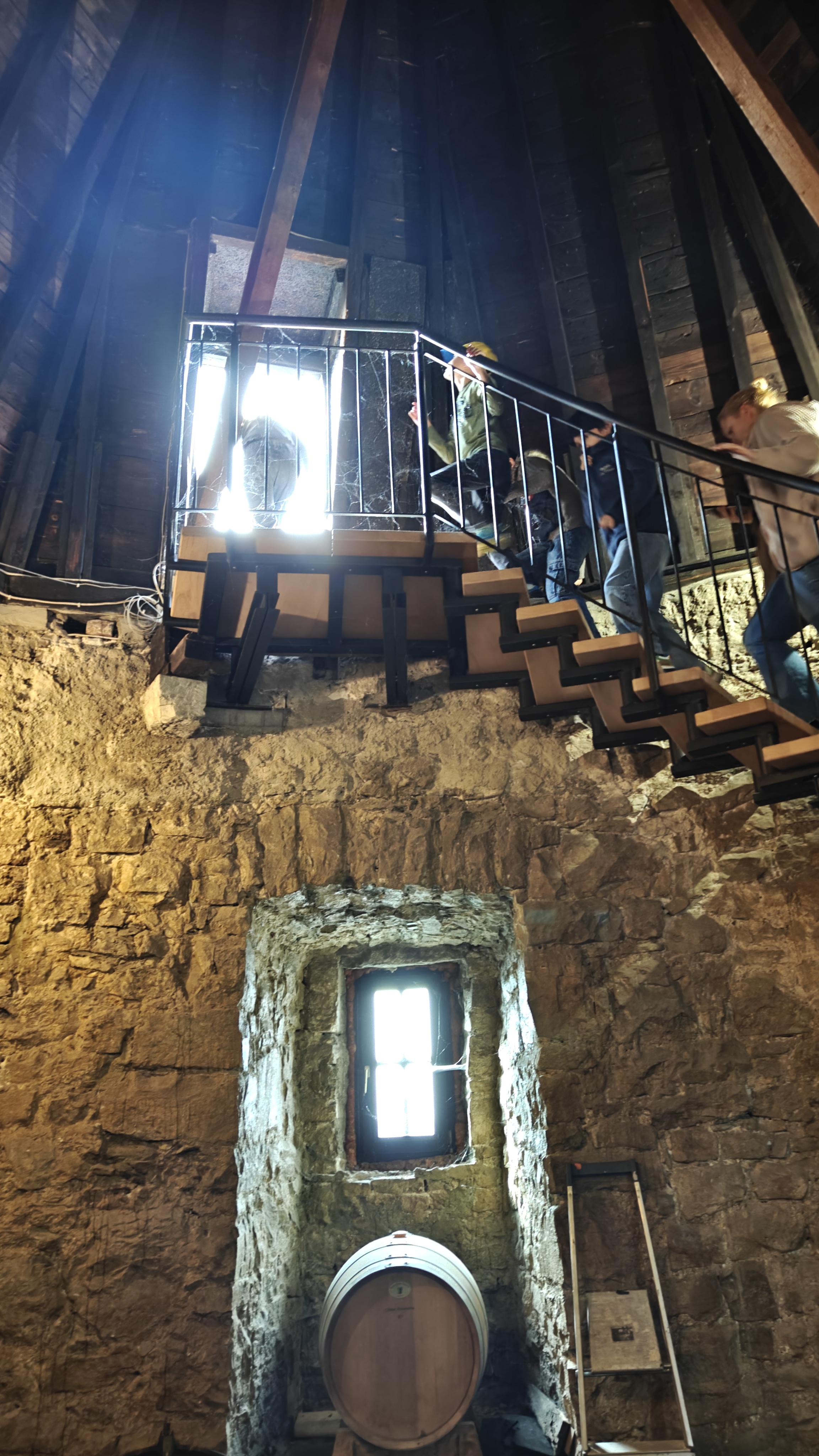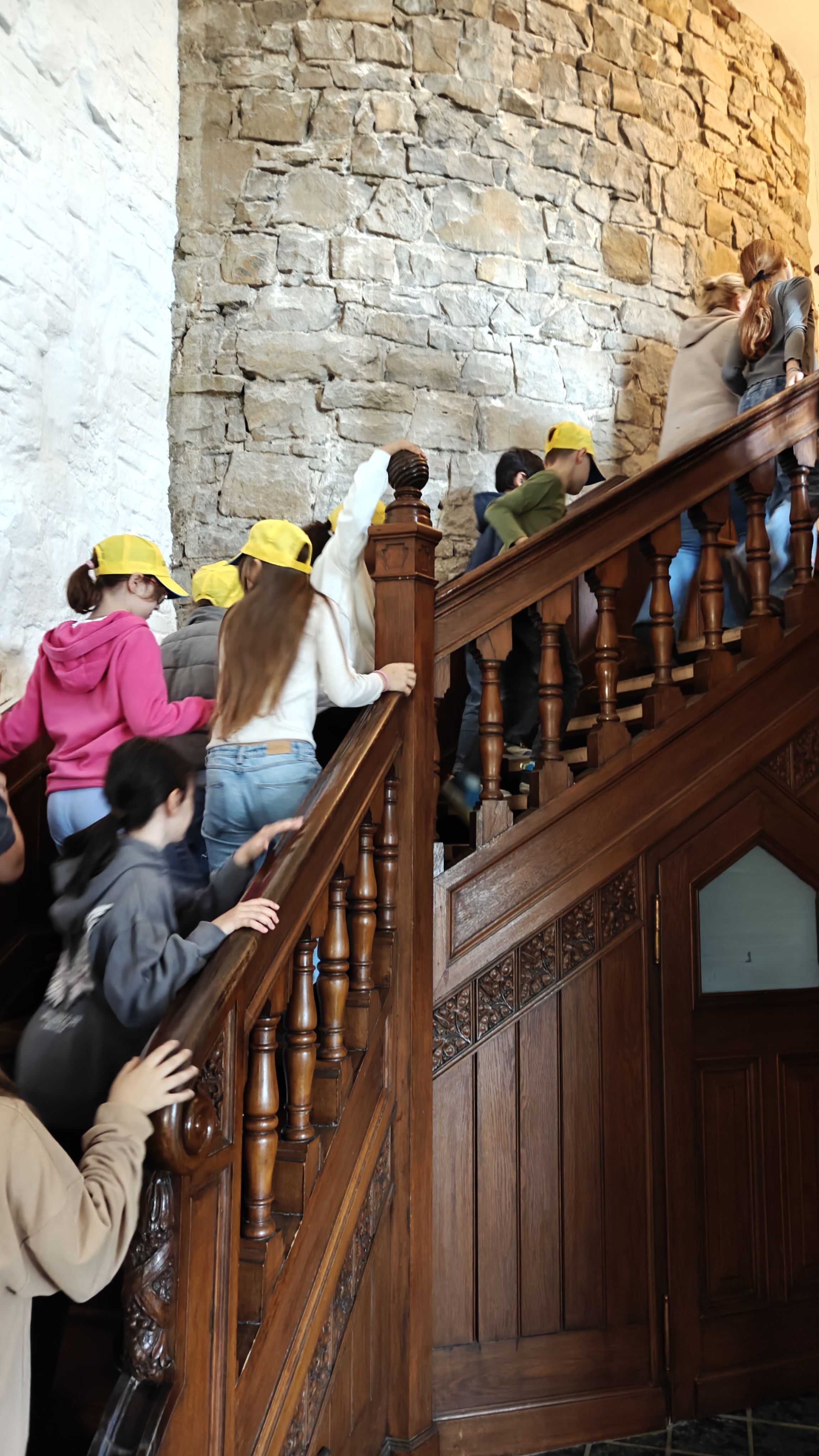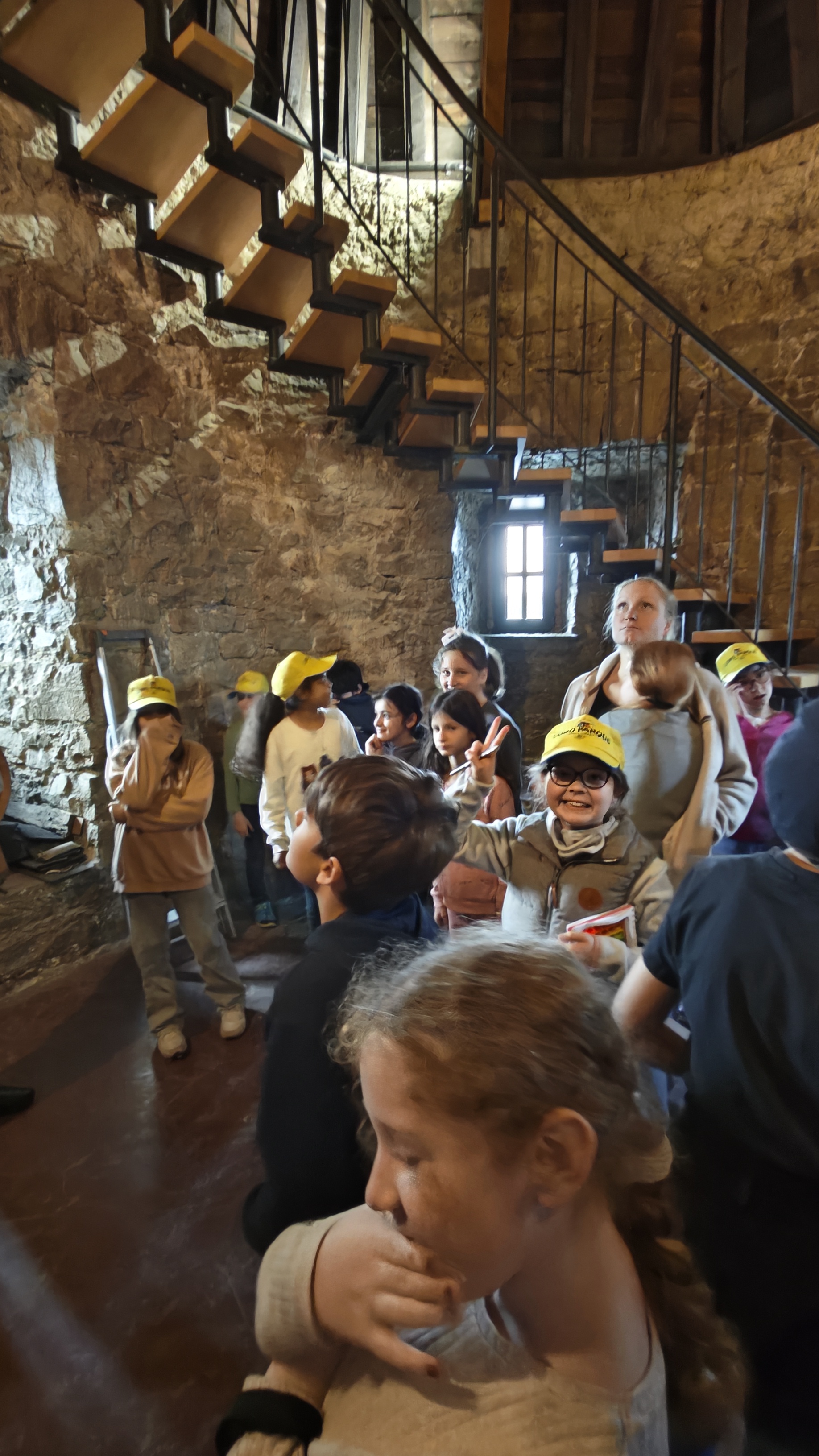 An der Burg wurden wir herzlich vom Vorstand des Burgvereins Rode empfangen. Danach führte uns Dr. Weyer etwa neunzig Minuten durch die Anlage. Er erklärte uns, wofür die Burg in früheren Zeiten genutzt wurde, zeigte uns den ältesten Teil und auch die neueren Gebäude. Besonders spannend war der Turm, den wir von unten bis zur Spitze erkunden durften. Dort, wo früher der Richter seine Verhandlungen abhielt, erfuhren wir, dass anstelle des heutigen Tisches einst ein Loch war, das direkt in den Kerker führte. Der Turm hatte damals gar keine Türen, man gelangte nur über Leitern durch die Schießscharten hinein. Ganz oben auf der Turmspitze erwartete uns ein wunderbarer Blick über die Stadt Herzogenrath.