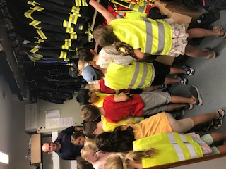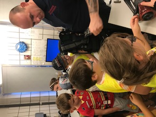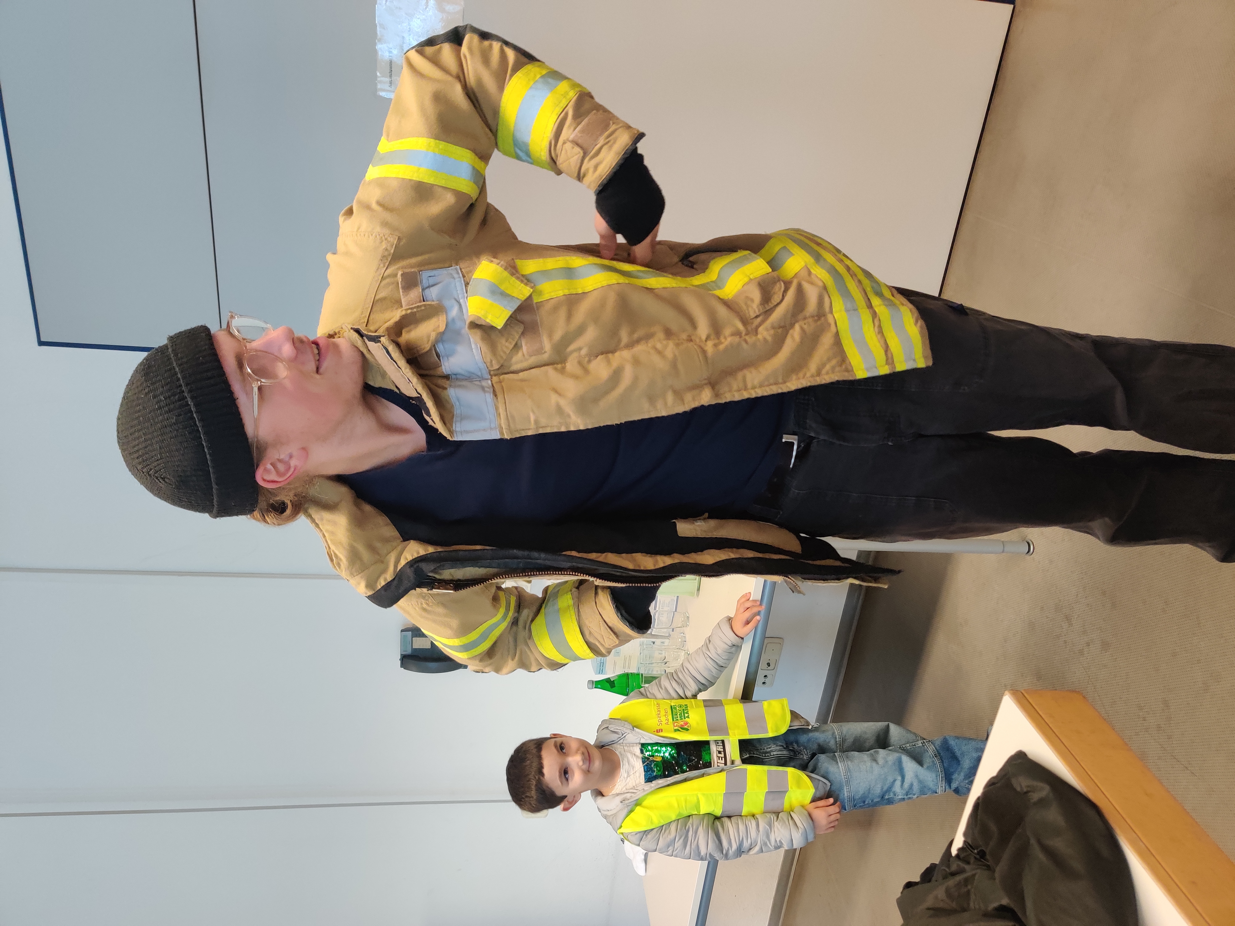 Im Rahmen des Themas Feuer im Sachunterricht haben die Kinder des Jahrgangs zwei aufregende Dinge erlebt. Am Montag hatten wir Besuch einer echten Feuerwehrfrau der Freiwilligen Feuerwehr, die uns viel über den Alltag erzählt und auch gezeigt hat. Die Kinder machten sich alle durch Klopfen auf ihren Helm bemerkbar. In einem echten Feuer könnten sie so gerettet werden.